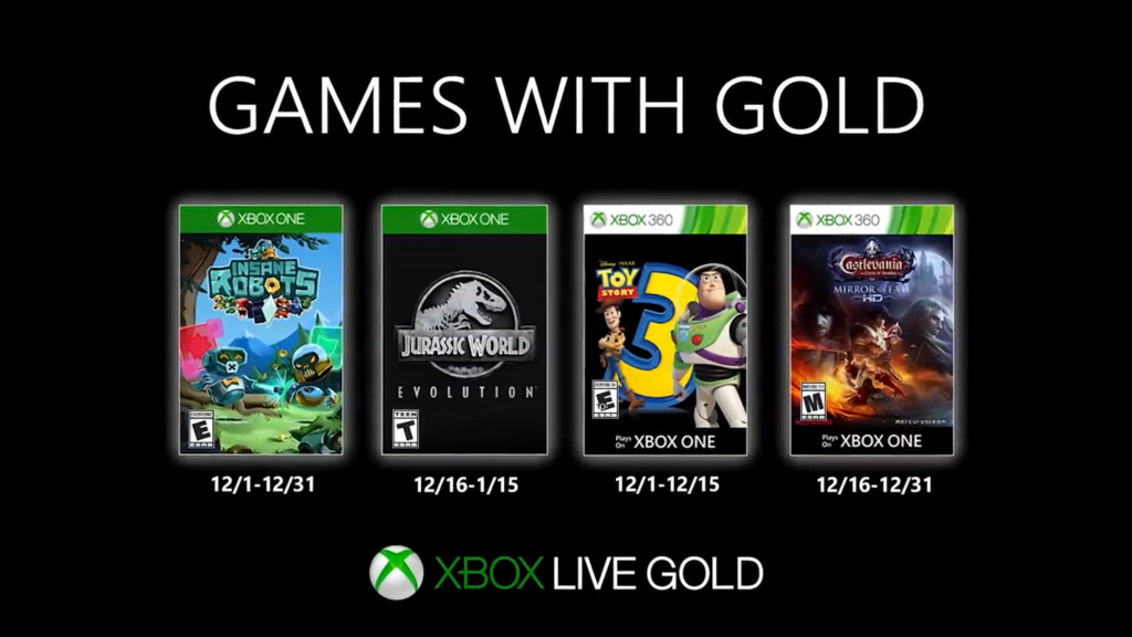 Xbox announced its upcoming free Games with Gold for the month of December. The games that will be available to Xbox Live Gold, and Game Pass Ultimate members, are: Insane Robots, Jurassic World Evolution, Toy Story 3, and Castlevania: Lords of Shadow – Mirror of Fate HD. These games are replacing November’s offerings, of Sherlock Holmes: The Devil’s Daughter, The Final Station, Star Wars: Jedi Starfighter and Joy Ride Turbo.