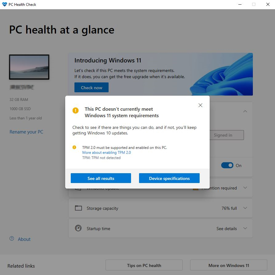 The app's first version was released in June, but back then, it didn't specify why a system wasn't compatible with the upcoming OS. Instead, users were met with a vague message stating that the PC is not compatible with Windows 11, leaving potential upgraders with a frustrating lack of information on what they need to do in order to meet Microsoft's requirements. In many cases, PCs were ruled out due to not having TPM 2.0 enabled, which can be done through a hardware chip, or via software within a motherboard BIOS.
