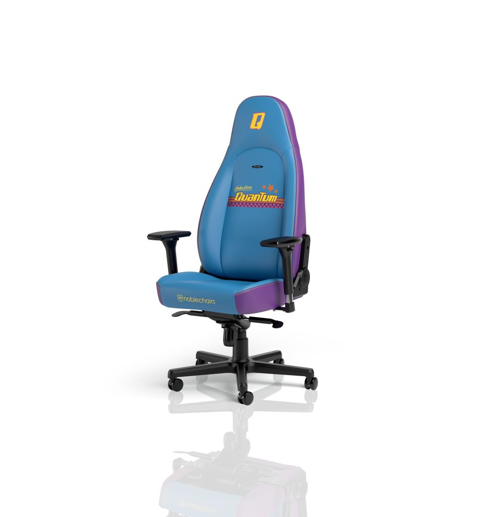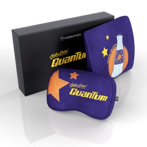 The Nuka-Cola Quantum Edition has been designed to take distinctive elements from the game. The front features a blue base, with a Nuka-Cola Quantum logo and Nuka-Cola Quantum “Q” embroidered on the backrest and the headrest, respectively. Complete with the noblechairs branding, the back of the chair is purple and features an embroidered Nuka-Cola Quantum logo and bottle, with glow-in-the-dark stitching. Other features of the chair include 4D armrests, a rocking mechanism, adjustable height and recline.