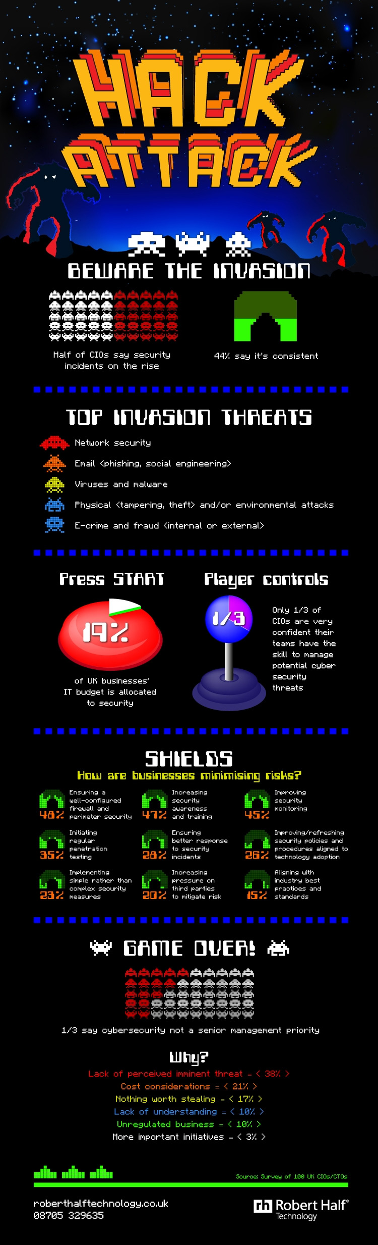 In a recent infographic by Roberthalf, which looked at a recent survey of 100 British Chief Information Officers and Chief Technology Officers, the numbers of those actually concerned with digital security, were surprisingly low. For some of them it's because they don't think they have much information worth stealing, or that there are more important things to focus on, but the largest number simply believe that there isn't much of a threat out there.