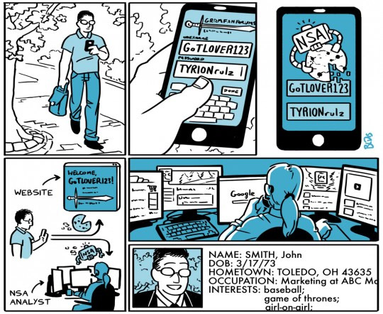 This means that with or without a VPN, with or without a private Wi-Fi connection, the NSA can figure out who's who by tracking the similarity of their login details across various sites and services.