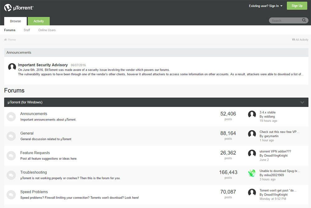Although the forum itself was hacked apart, the exploit didn't originate their we're told. The one at fault was one of Utorrent's vendors, which unfortunately allowed hackers to gain access to the forum's database and in turn exposed the details of the forum's many thousands of users.