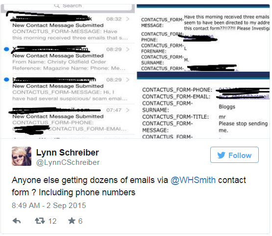 While the retailer eventually took the problematic form down, before that happened the problem was only compounded when people began using the WHSmith site to try and inform the company of the problem, only for that information to then be sent on to everyone, including personal details like usernames, email addresses, full names and in some cases even telephone numbers.