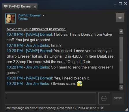 If people fall for the kind of obvious scamming tactics in that forum post then it really is their own fault. By refusing to bail people out of their stupidity, Valve ultimately is going to force stupid people to shape up and that will mean these incidents will go down eventually. Coddling people who fall for the simplest scamming tactics doesn’t help anybody, really.