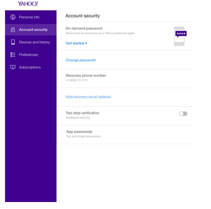Yahoo is currently setting up a system for ‘on-demand' passwords. Much like two-factor authentication, you'll be sent a unique time sensitive code via text message every time you want to log in. Some online banking services use a similar method. With these on demand passwords, you won't have a permanent log in tied to your account, instead, a new password will be generated each time.