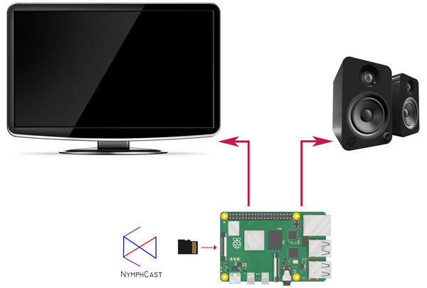 The NymphCast device can be controlled through a local network with either the NymphCast Player application (available for Mac and PC), or through the NymphCast Player app (available for Android). In short, NymphCast makes it possible to connect an SBC to an output device and control the playback from a phone or computer through the local network.