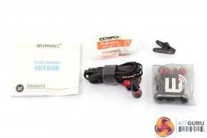Inside that hard case, we finally get to the earphones themselves. There's also a small user guide, a small clip (to stop the cable bouncing around) and no less than nine different ear tips, including one set of Comply S-400 foam tips.