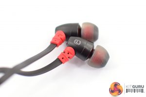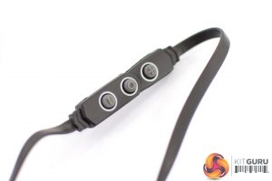 Positioned just below the left earbud we also find a small in-line controller. This allows for volume adjustment, as well as play/pause functionality and the ability to answer phone calls. This small controller also houses the S0's microphone.