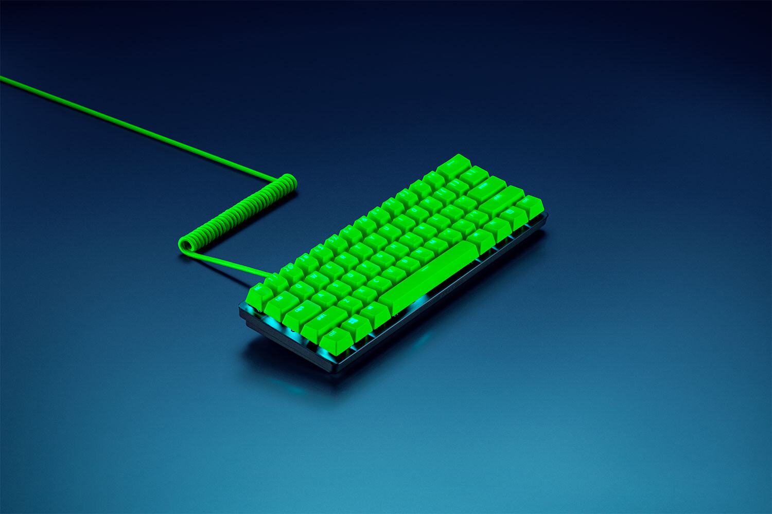 The Razer PBT keycap + coiled cable upgrade set packs a set of 120 Razer Green, Classic Black, Mercury White or Quartz Pink keycaps and a coiled USB-C to USB-A cable, this upgrade set allows you to customise your keyboard and reduces the cable clutter on top of your desk. Priced at $49.99/€59.99, the Razer PBT keycap + coiled cable upgrade set is compatible with Razer's 60%, tenkeyless, and full-sized mechanical/optical keyboards with US and UK layouts.