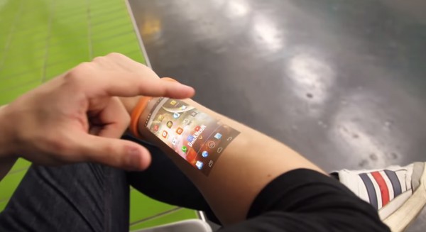 This is an interesting idea but needs more refinement and thought. I like the idea of the bracelet sensing touch movements – very doable with today’s optical IR technology. ALso, the touches don’t have to be right on the arm since the technology exists to detect air gestures around a centimeter or two above the actual surface so the issue of an image being blocked by fingers isn’t as big of a problem. Getting a micro projector to work that will project an image along the arm will be a challenge due to distortion of the light. If you’ve ever tried to project an image on a curved wall you’ll know what I mean. Accidental activation will be an issue. Still – interesting idea – needs refinement but these are all just problems to solve and get around.