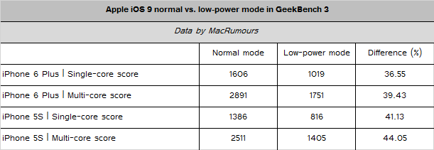 According to MacRumours, performance in low-power mode will degrade, but not too significantly. Based on Geekbench 3, compute horsepower of Apple’s A8 system-on-chip is reduced by 36 – 39 per cent. The reduction of frequency probably helps Apple to lower voltage of its SoC and reduce power leakage to a minimum, which greatly cuts power consumption of the chip. In fact, Apple iPhone in low-power mode provides rather excellent performance even in case of Apple A7 application processor, based on test results by the web-site.