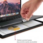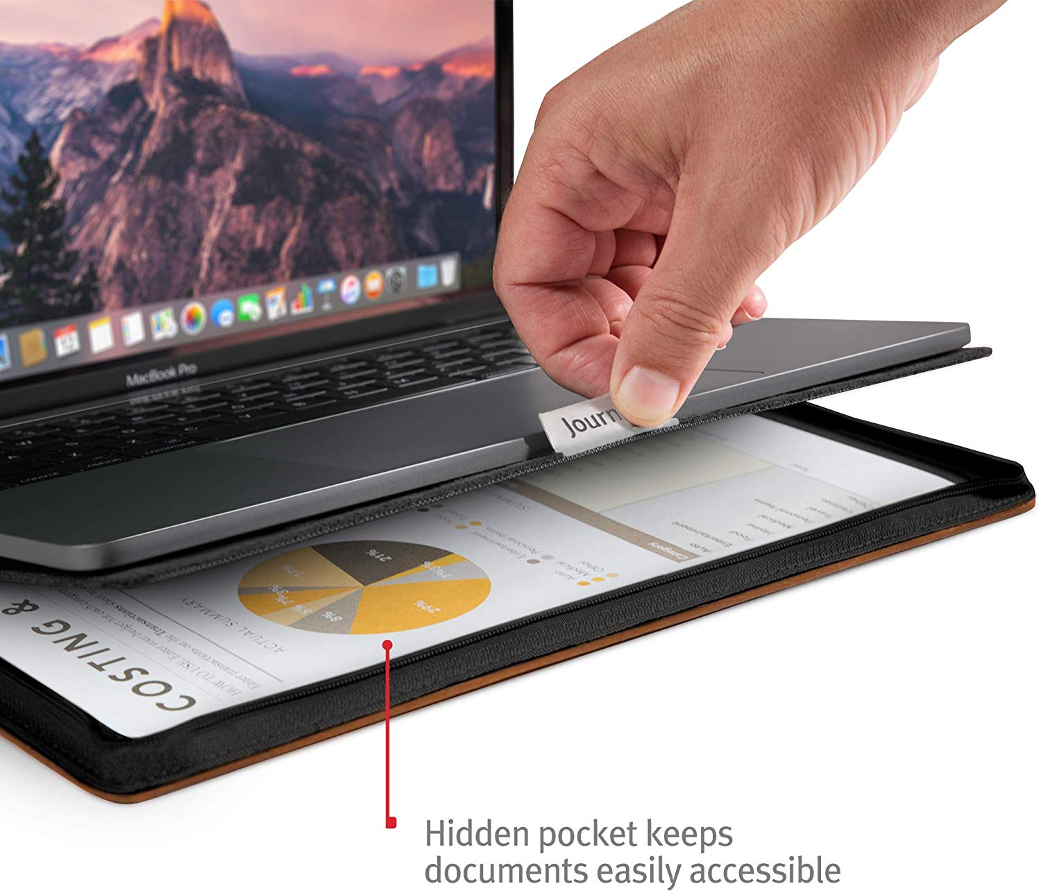 Twelve South has fashioned the Journal for MacBook out of top-quality water and UV resistant leather, it features smart details including leather zipper pulls, embossed elements and modern black stitching. The slim form factor of the Journal case means users can adjust screen angles, comfortably type and easily access USB ports without having to remove the case. At the bottom of the interior of the Journal MacBook case is a hidden compartment perfect for carrying documents.