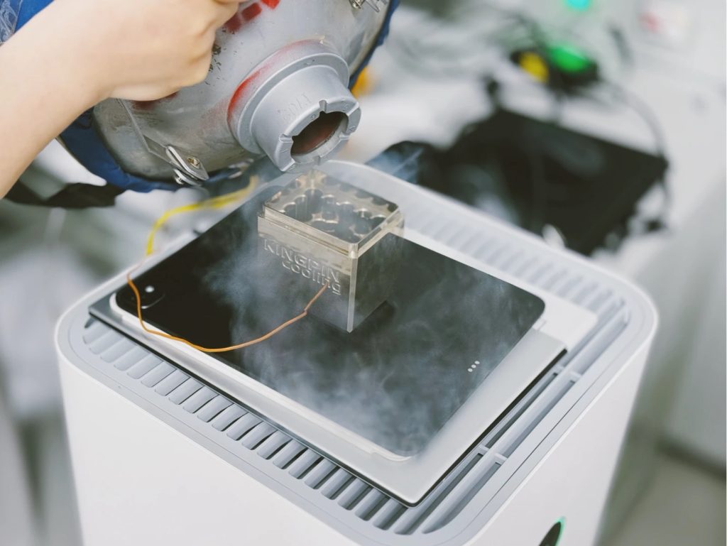 Geekerwan (via Tom's Hardware) benchmarked the M4 in its 3+6 core configuration (3 performance cores + 6 efficiency cores) but has already acquired the 4+6 model for further testing. Geekerwan inserted a Kingpin Cooling T-Rex Rev 4 CPU LN2 pot at the rear of the iPad Pro, most likely where the M4 processor is housed, and filled it with liquid nitrogen to keep the chip cool while running at 4.41 GHz.