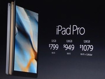 Apple's annual September event is well under way and so far, some big announcements have been made. First up, the iPad Pro is now an official thing, featuring a 12.9 inch screen, An A9X chip offering twice the performance of last year's A8X and a new stylus, to help designers or note takers. It launches in November, starting at $799, so it is definitely pricey.