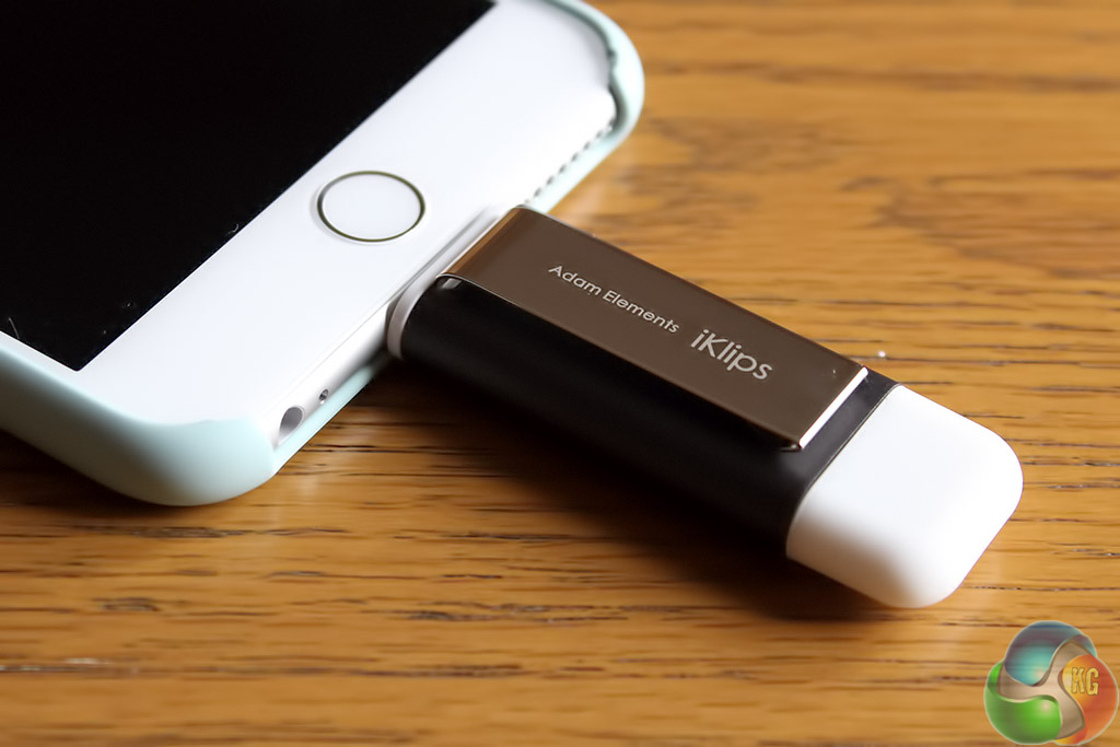 The ‘iKlips' brand name comes from a metal clip attached to the side. Its designed to compliment the internal storage on your iOS device, providing additional space for extra media (on a long flight, perhaps) so the idea is that you keep the iKlips on you at all times, maybe attached to a belt or inside a bag.