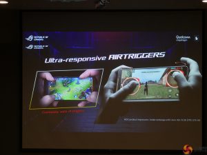 The corners of the phone have something called ‘air triggers'. These are small areas that you can tap and they essentially act like shoulder buttons on a traditional controller. This gives serious gamers a way to control the action without having to tap away on the touch screen and blocking the image. ASUS has also focussed quite a bit on providing haptic feedback, so in all, gaming on this phone should feel a bit closer to gaming with a traditional controller, but with a big screen in the middle. The ROG Phone will also support third-party mobile gamepads, such as those from Game Vice.
