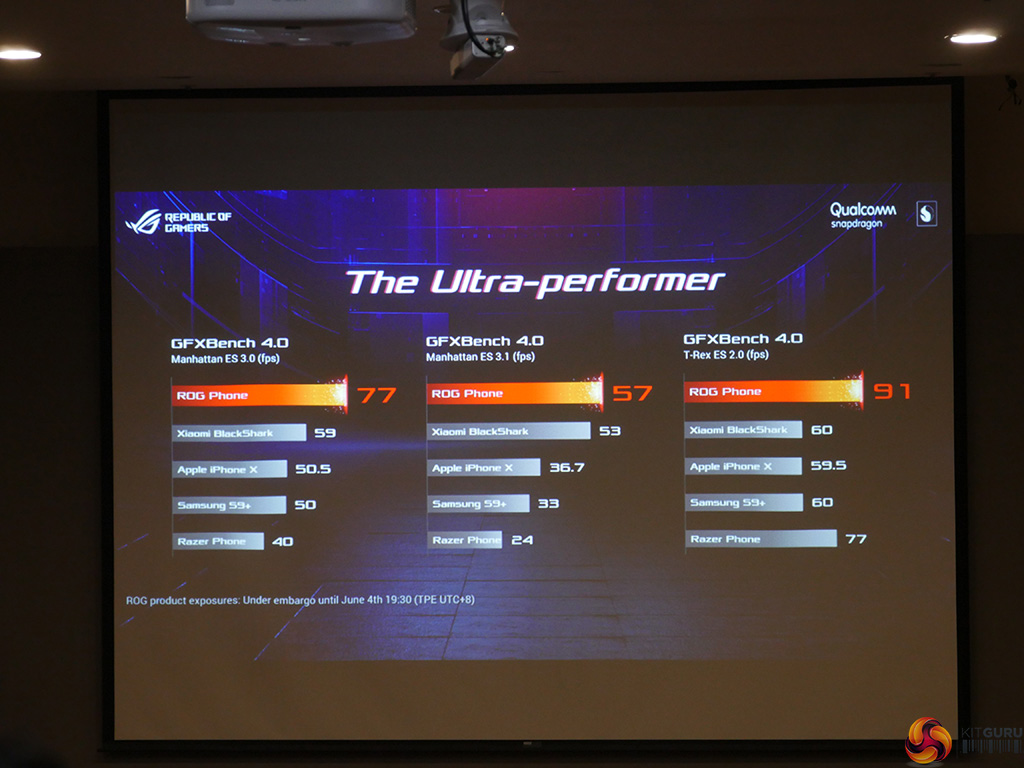 Benchmarks results touted at the Computex briefing showed us that the ROG Phone is capable of outscoring the competition in PCMark, GFXBench and AnTuTu.