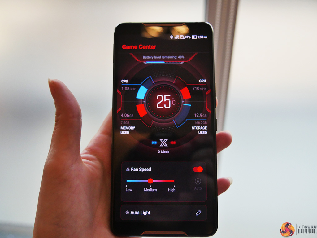 The ASUS Game Center software on the phone will give you options to adjust the RGB lighting on the back of the phone. It will also show you stats like CPU temperature, storage used and RAM currently being used. The software also gives you the option to adjust fan speed, so you can balance things between noise and cooling performance.