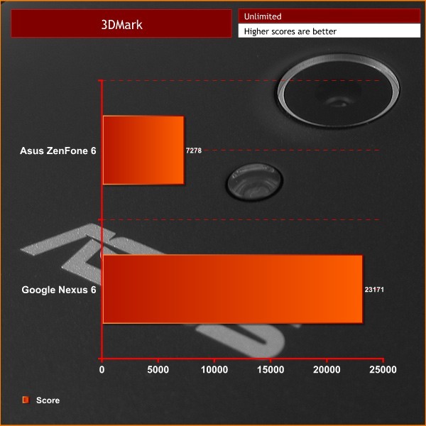 The 3DMark Ice Storm Unlimited test was another area where the ZenFone fell down against its pricier opposition. ASUS' device scored 7278 here, whilst the Nexus posted a huge 23176 – over 3 times the performance of the ZenFone.