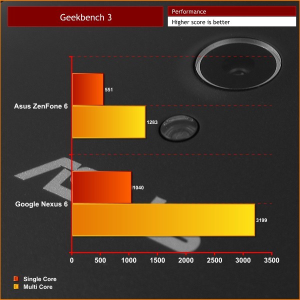 The ZenFone didn't perform as well in the benchmark tests we ran. In Geekbench 3 it scored 551 for single-core performance, and 1283 for its multi-core performance. This lags behind the premium Nexus 6 which scored 1040 and 3199 respectively.