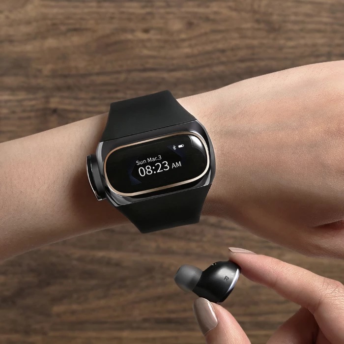 The Wearbuds from Aipower are designed to be ultra-portable, create excellent sound and include fitness tracking features to provide a complete wireless earbud solution. The Wearbuds are stored and charged inside a fitness band and are controlled by a dedicated software app. The wrist-worn device is AI voice interactive and provides the freedom of wireless earbuds without the need for a bulky charging case.