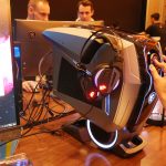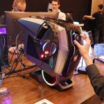 In addition to this bunch of new monitors, MSI showcased a brand new Aegis Ti5 pre-built system. The Aegis Ti5 includes the latest Intel Core i9 processors, up to Nvidia RTX 2080 Ti graphics and an abundant amount of storage bays. MSI has added separate cooling chambers to the Aegis Ti5, one specifically for the VRM solution, while the case of the Aegis Ti5 features a pull-out headset stand and a similar HMI display as the MAG381QCR monitor. The HMI can display system information in real-time and features an adjustable control knob for configuring lighting and game modes that automatically tune the system deepening what game you are playing.