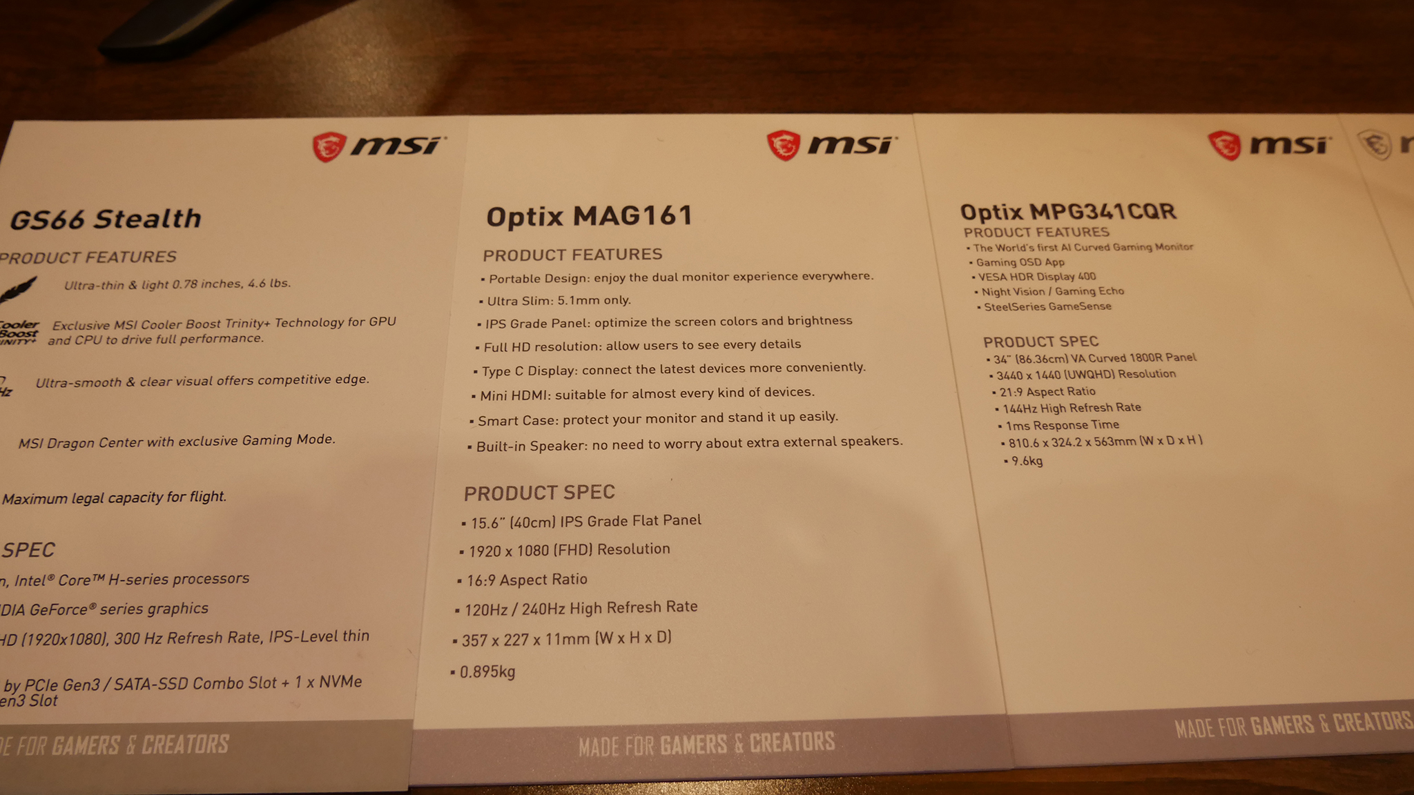 An interesting new display debuted by MSI at CES is the MAG161 Portable Monitor. The monitor on display was connected via USB Type-C, however, Luke was unsure whether this was carrying DisplayPort signal or USB video connection and unfortunately MSI was unable to confirm this too. The MAG161 will initially be released with a 60Hz 1080p panel, with 120Hz and 240Hz versions expected to be introduced later.