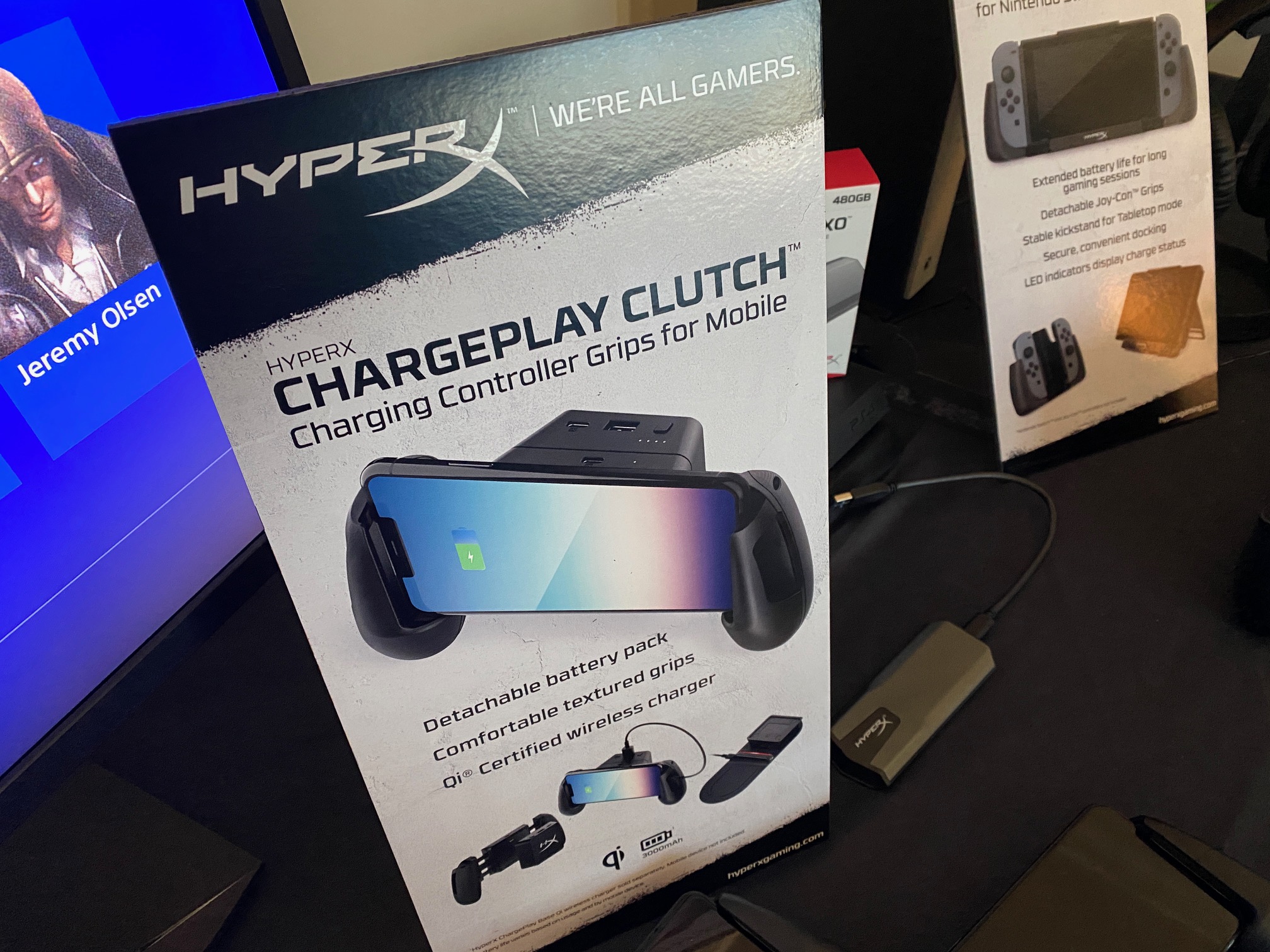 Sticking with mobile gaming peripherals, HyperX also has a new ChargePlay Clutch docking system for mobile handset gamers too. The ChargePlay Clutch for mobile includes rubber-textured controller grips and features a 3000mAh battery pack that doubles up as power bank or USB dock and is certified for Qi wireless charging.