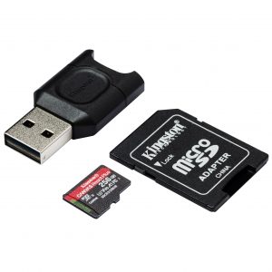 Kingston’s Canvas React Plus series is also available in SD and microSD format with a maximum capacity of 256 GB available. React Plus features top of the line UHS-II performance with Class 10 UHS-II speeds of up to 300 MB/s read, 260 MB/s write (SD) and 285 MB/s read, 165 MB/s write (microSD). The React Plus microSD card series also support the A1 app performance class.