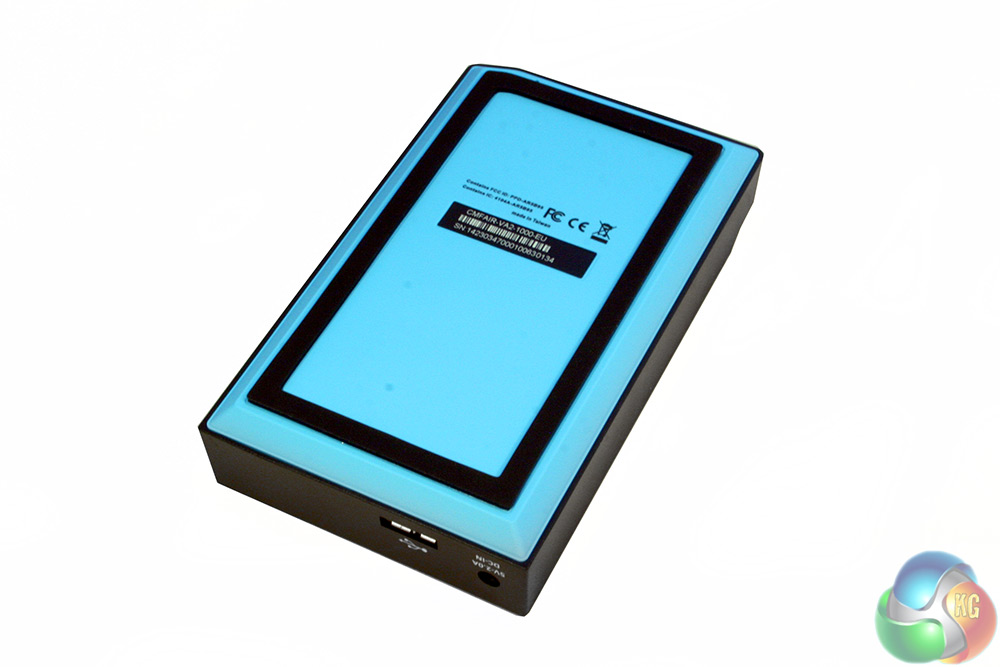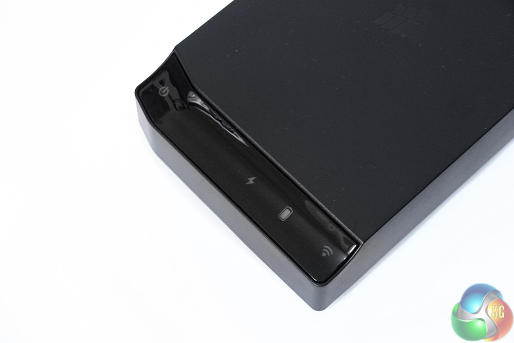 The indicator strip at the front lights up to let you know when the Air 2 is turned on, when WiFi is powered up, when the battery is getting low and when it is charging. The back has a simple pair of ports: one for AC power and the other for the USB 3.0 cable.