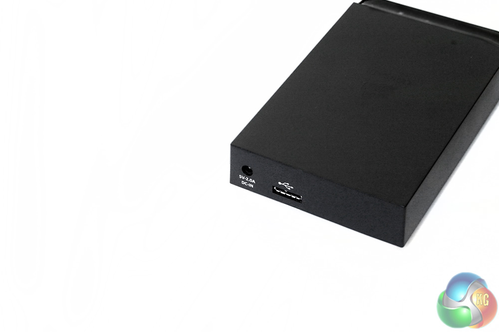 The Corsair Voyager Air II is a smart little device, about the size of a traditional 3.5″ HDD, though obviously containing the much smaller modern form factors. It features a black paint job over its whole body, though the main section is a matt black plastic, while the front indicator section has a glossy finish.