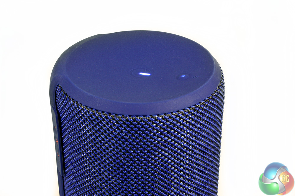 The actual speaker itself is a vertical design and is a little more than eight and a half inches tall. The particular model I have is the Electric Blue version, with contrasting red plus and minus buttons for volume control. It is also available in Charcoal Grey and Lava Red colour schemes, which have contrasting blue and grey buttons respectively. There is also a plum colour model in the works.