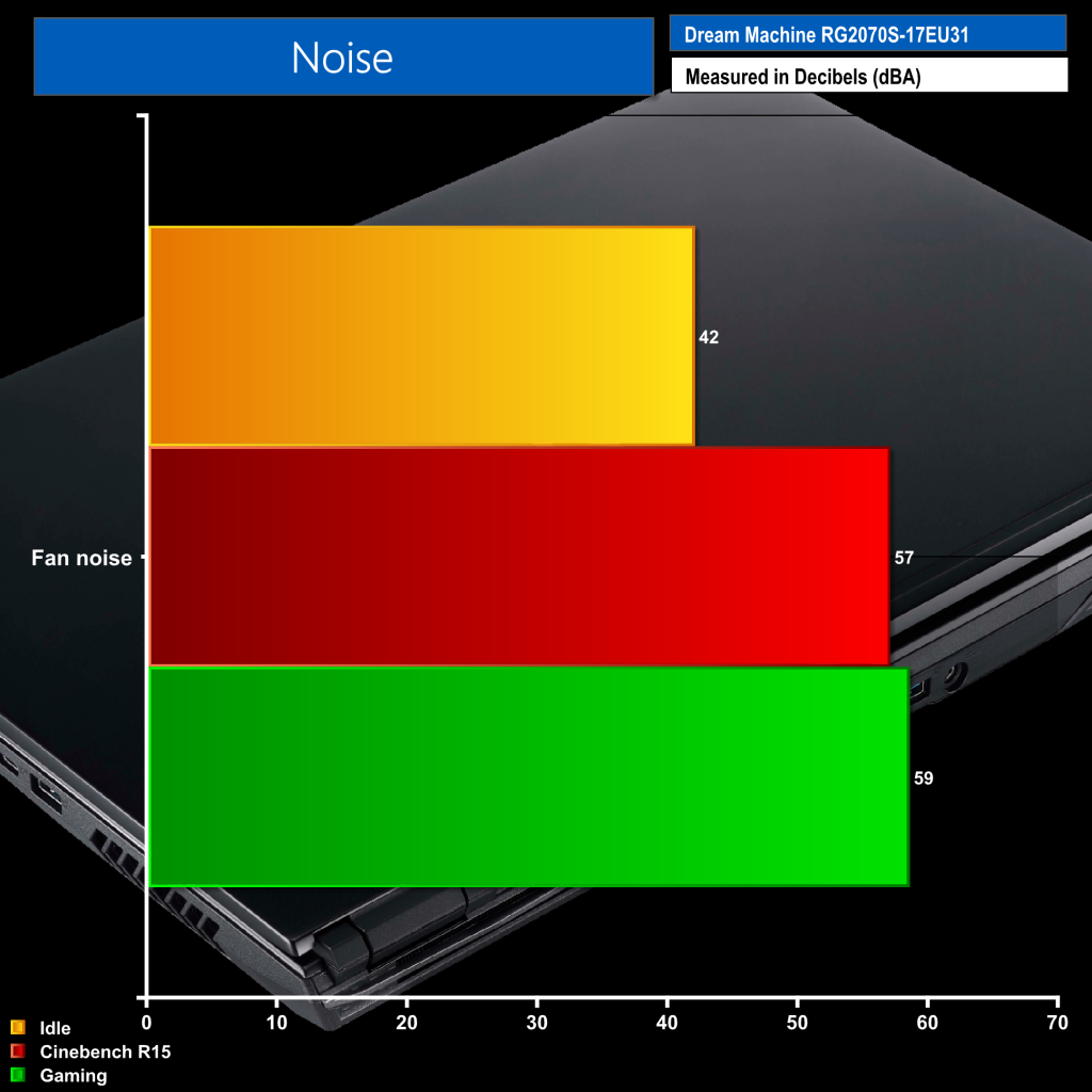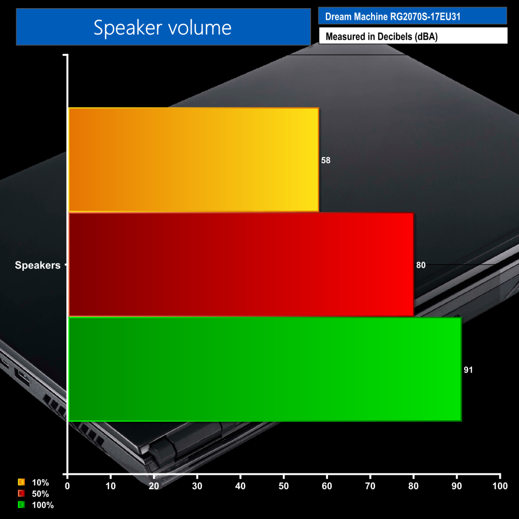 Power consumption was expected with the components inside and the noise levels were done with the speakers muted. The fans do get pretty loud when they’re on maximum. Finally, our speakers performed really well too and got very loud. What I liked was the lack of rattle from the chassis when at full volume, which I think a lot of laptops struggle with.