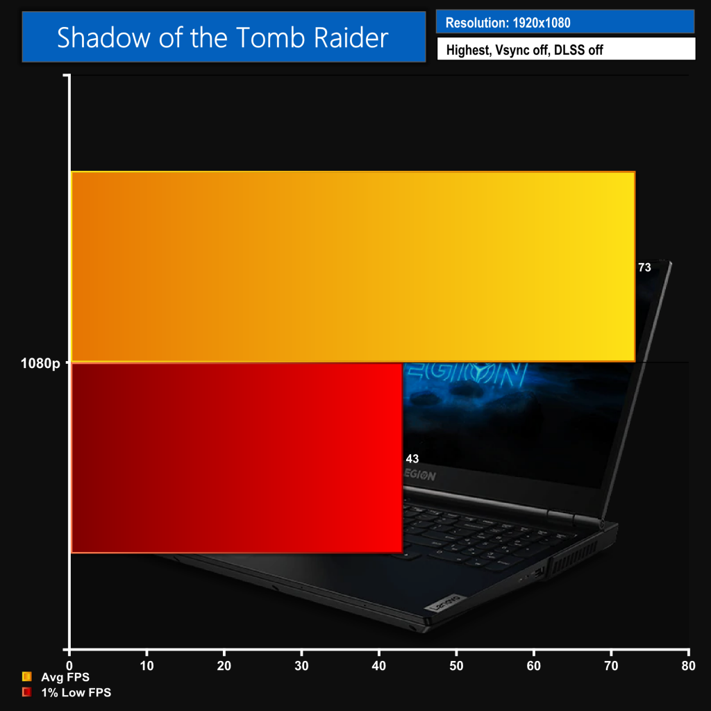 Placing last in every test doesn’t actually make the Legion a loser! Our 2060 is up against 2070 Max-Q and Max-P GPUs, considering this the scores are very close and what we expected to see here from a 6GB RTX 2060.