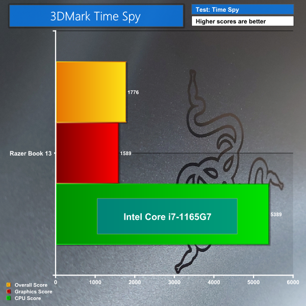 Looking at the graphics capability from the Intel® Iris® Xe Graphics we ran 3DMark Time Spy and the results were as expected. Despite not being a gaming laptop, I wanted to test how it would handle some 1080p gaming nonetheless.