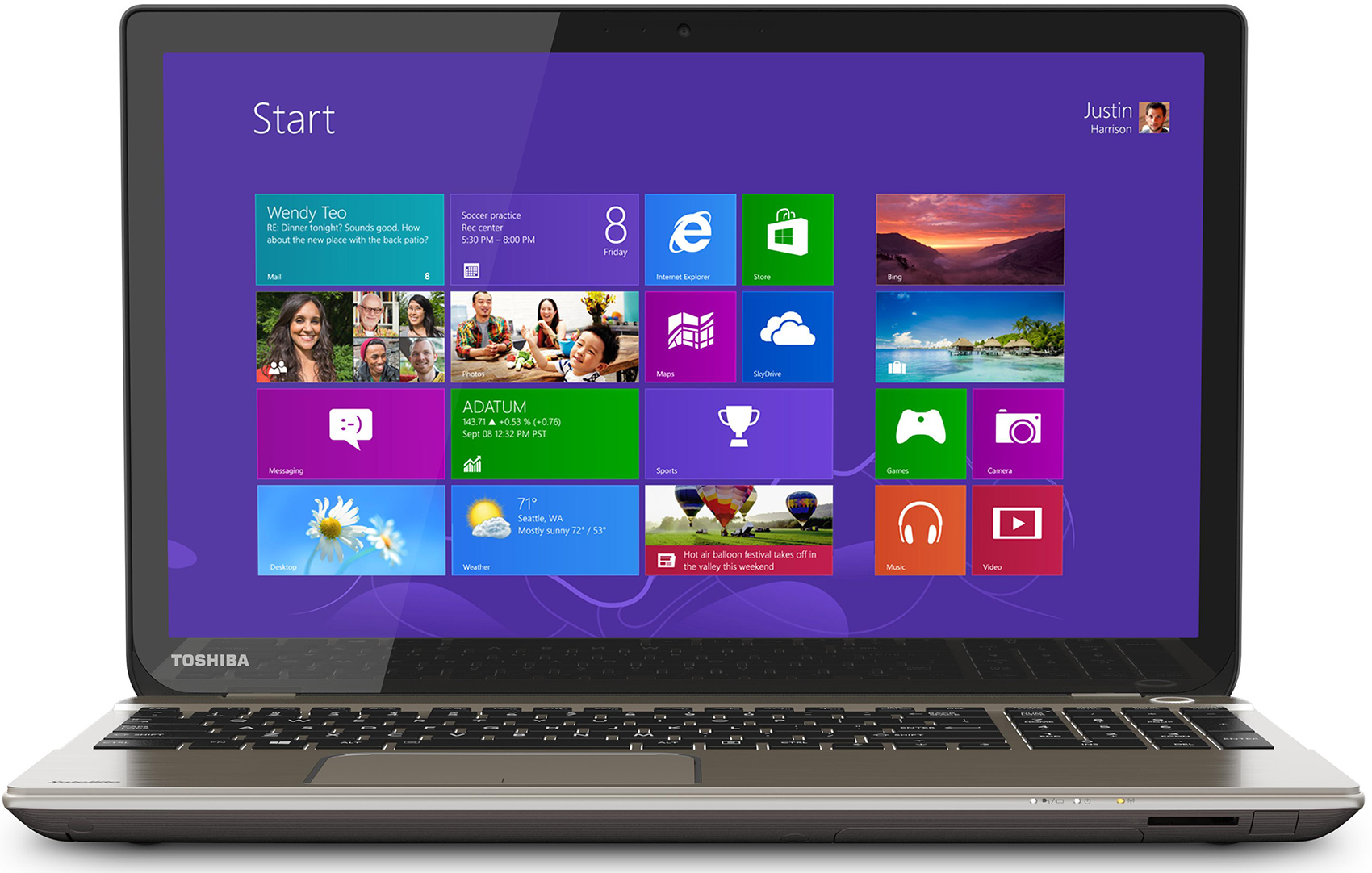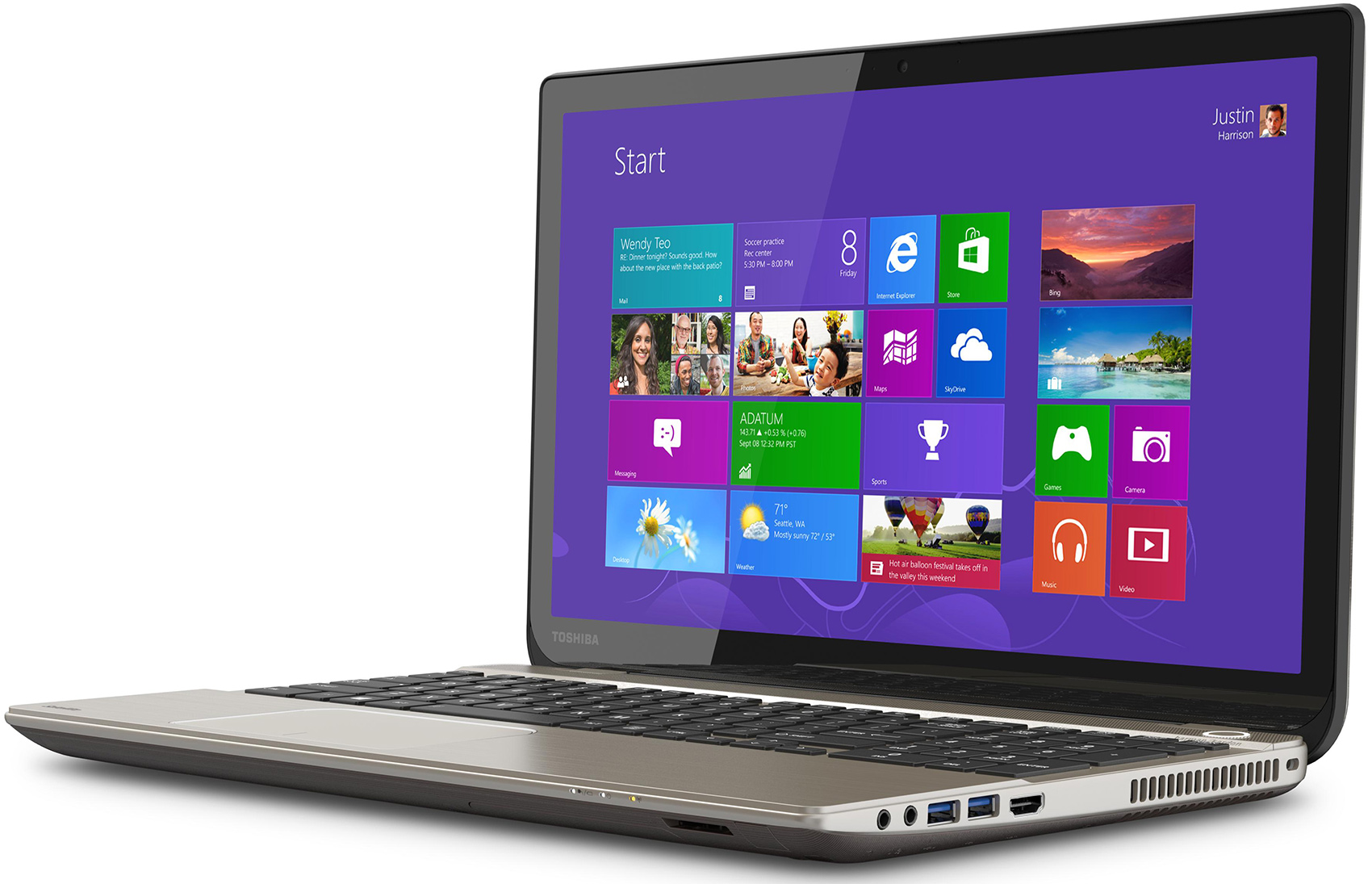 The new Toshiba Satellite P55t is based on Intel Core i7 quad-core “Haswell” microprocessor and is equipped with AMD Radeon R9 M265X graphics solution with 2GB GDDR5 memory, up to 16GB of DDR3 memory, 1TB hard drive, Blu-ray burner, Wi-Fi 802.11ac wireless network card and so on. The laptop can output 4K video via HMDI port to external monitors or TVs. The Satellite P55t is equipped with high-quality Harman Kardon stereo speakers, which should make multimedia enthusiasts glad. The notebook uses Microsoft Windows 8.1 Pro operating system with the latest updates.