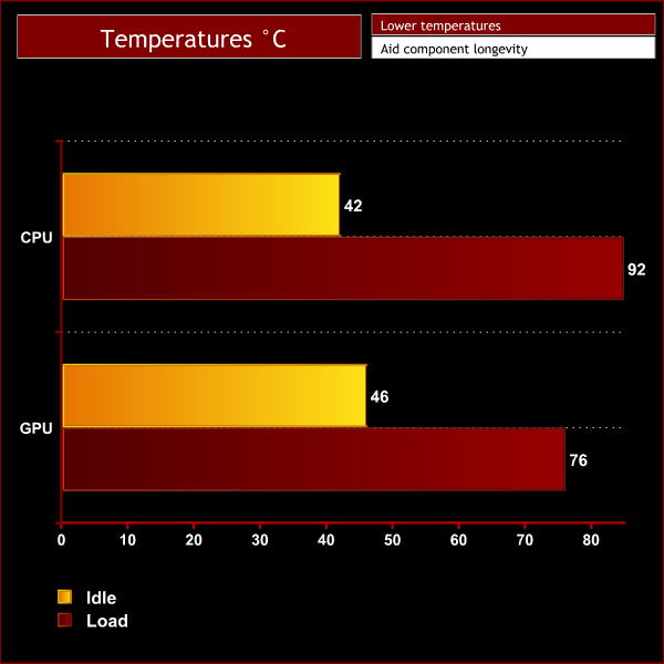 Meanwhile, the GPU temperatures are much better. The GTX 1060 remained at a cool 46C while the laptop idled, and it only maxed out at 76C under load during our performance testing – so absolutely nothing to be concerned about.
