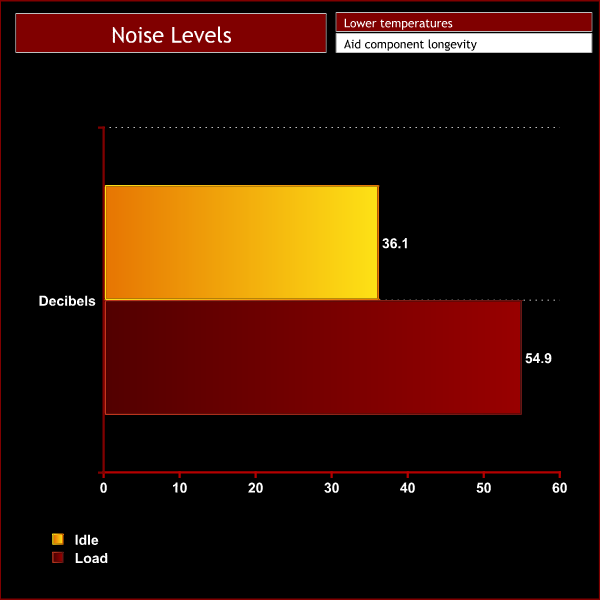 When idling, the Fusion II is very quiet producing just over 36dB of noise. You have to concentrate on the fan noise to notice it at all.