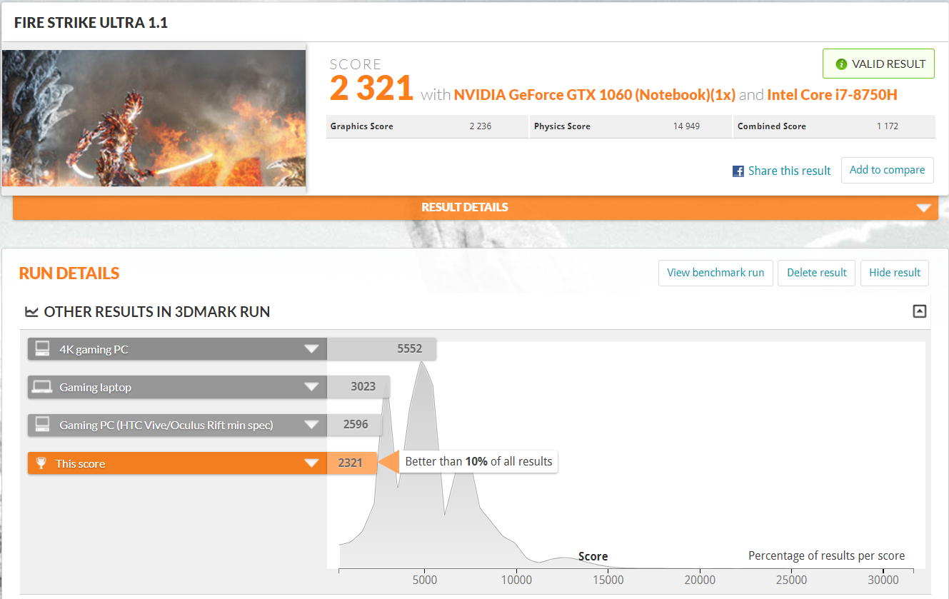 However, when it comes to the Physics and CPU scores the Fusion II sits comfortably somewhere in the middle as all 7 of the comparison laptops use the same i7-8750H.