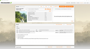 To test battery life I used the ‘Home’ benchmark in PCMark 8. This test isn’t hugely demanding when it comes to computational requirements and, although artificial, it is likely to simulate the sort of stress the laptop would undergo while doing a small amount of video editing, web browsing and word processing. I set the screen brightness to 100%, and the keyboard brightness to 100%.
