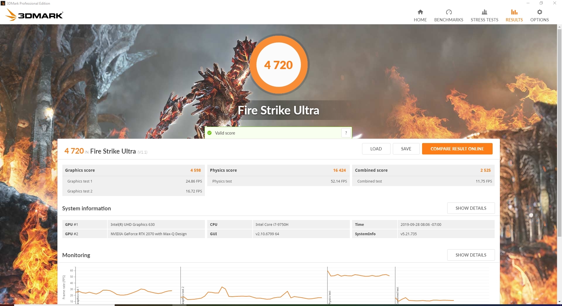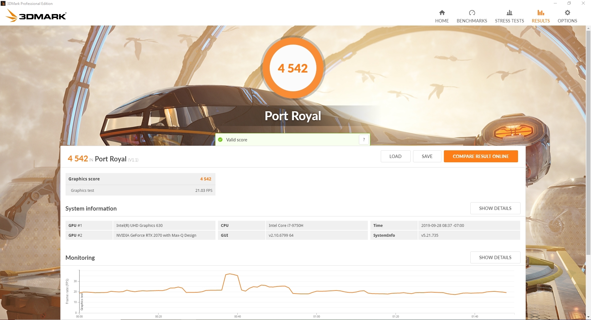 In the Port Royal benchmark which tests raytracing performance it got within touching distance of the RTX 2080 Max-Q equipped Zephyrus which is very impressive.