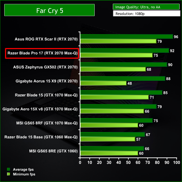 I used the Razer Blade Pro 17 to play 3 different popular and graphically demanding games. I tested the games at their highest graphical settings with DX12 turned on where possible and AA disabled. I then compared the results to other laptops Kitguru have tested.