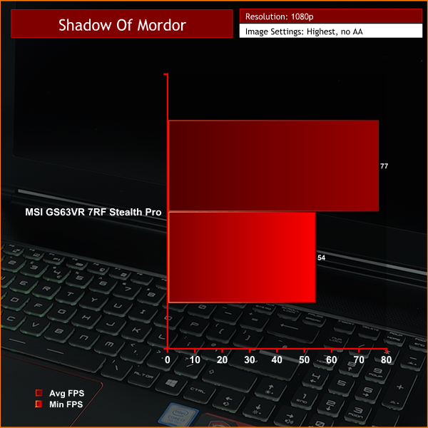 We all know by now that the GTX 1060 runs out of steam at Ultra HD 4k resolutions, although if you are happy running modern titles with lower image quality settings then it is possible to tune most game engines to deliver frame rates close to 60 frames per second. We don't believe in reducing image quality too far however, so we have tested today at 1080p – the ideal resolution to be gaming if you buy this Stealth Pro. Nothing has changed in recent months, if you want to game at 4k then we recommend you opt for a fully fledged, heavy gaming laptop with one or two GTX 1080's in the mix.