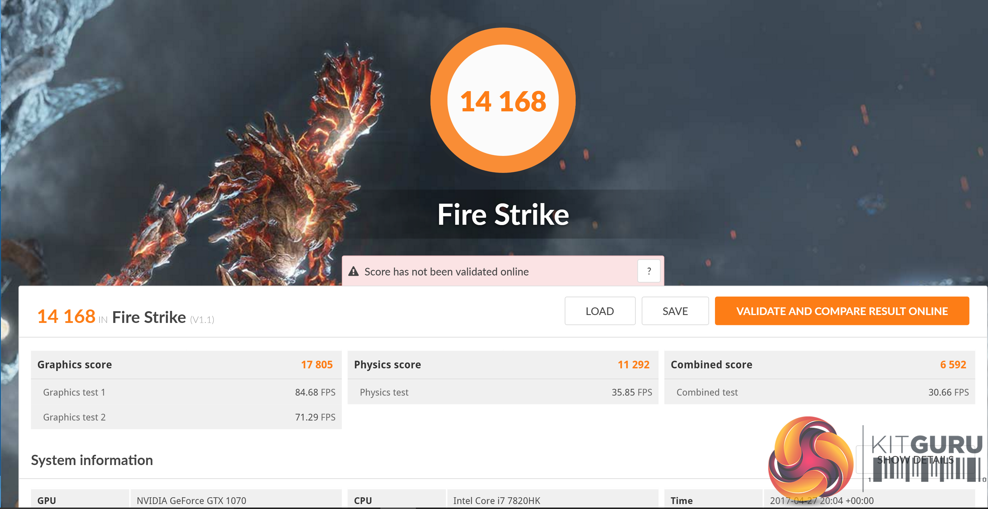 - Solid gaming performance from the GTX 1070 and Core i7 combo.