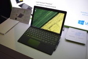 Lastly, I also got to play with the Switch 5 (left) and Switch 3. These are Acer's 2-in-1 laptop/tablets, and the Switch 5 (£899.99) is the more high-end with a liquid cooling loop no less, plus Core i3/i5/i7 processors (model depending). The Switch 3, however, uses lower-power Celeron and Pentium processors, but that does mean it is passively cooled. It will also cost £479.99 so is a fair bit cheaper.