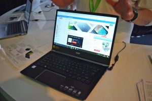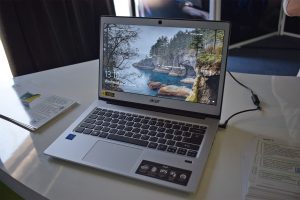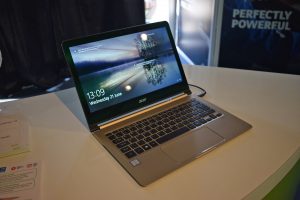 Acer doesn't just make gaming products, though, as I also got a look at some of its thin-and-light laptops. From left to right we have the Swift 7, 5, 3 and 1 – each of which aims to offer decent performance and strong battery life across a range of price-points. For example, the Swift 7 is the flagship UltraBook and sports an all-aluminium body plus MU-MIMO WiFi tech. The Swift 1, though, is a lower-end laptop so it is not quite as thin as the 9.98mm Swift 7, but it still features a FHD IPS display plus reported 10-hour battery life. The Swift 1 will cost £349.99 while the Swift 7 is from £999.99.