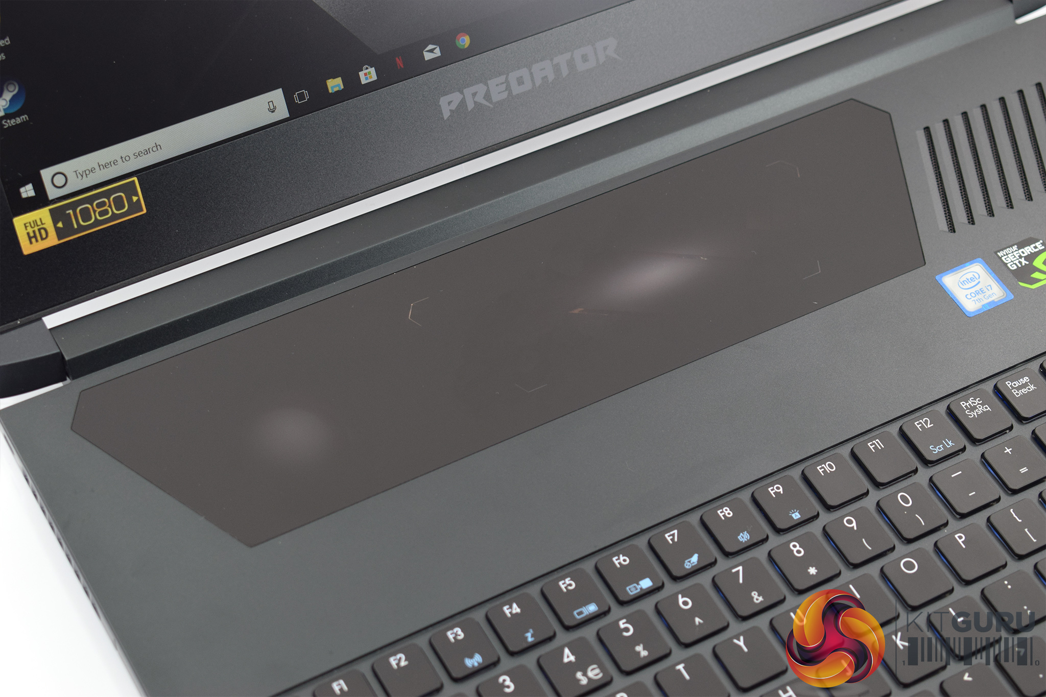 The reason I am not going into too much detail about all the good things about the laptop is because they are much more obvious. Less obvious is the major downside to the Triton 700, and that is the trackpad. In all honestly, it is simply placed in the most unpractical position possible. It is incorporated right at the top of the chassis, just under the screen, and is housed in a semi-transparent glass section which looks down onto a single cooling fan and the CPU/GPU heatpipes.