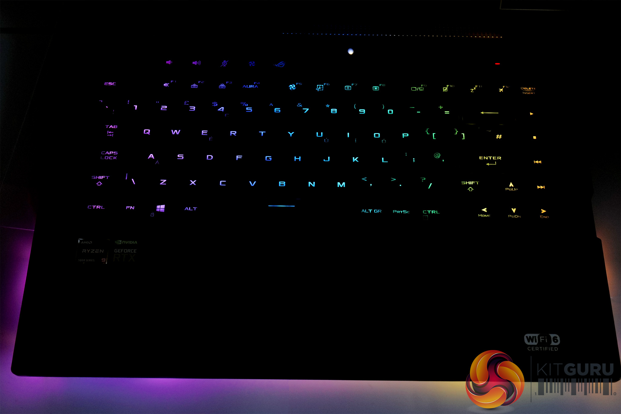 I do like the look of the Scar though. You can tell it's a gaming machine just by glancing at it, with a cool dotted design on the lid that extends down to the screen's hinge, while about a third of the laptop deck is even constructed with semi-transparent plastic – reminiscent of an old Game Boy. There's also plenty of Aura RGB lighting, stretching from the ROG logo on the lid, to the keyboard and then an extended LED bar running along the chassis' front edge.