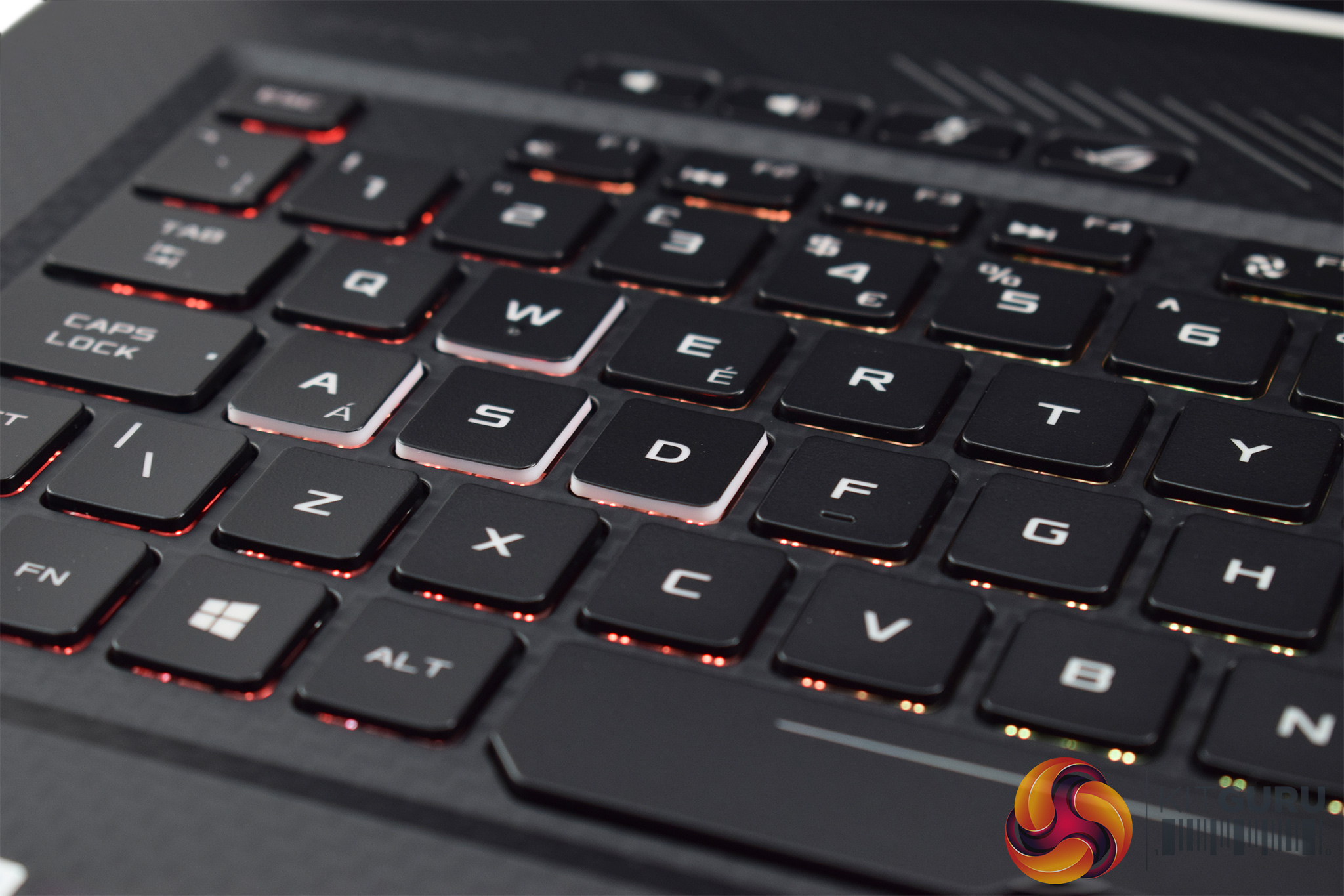 Elsewhere, the RGB keyboard is very decent with some appreciable tactile feedback and a fair amount of travel. It is still a laptop keyboard, so you don't get close to the 4mm of travel you would from a desktop mechanical keyboard, but compared to many other keyboards on the market (including ASUS own ZenBook 3), the Scar does well in that regard. It is also an RGB keyboard, with four different zones that can be fully programmed in the ROG Aura Core piece of software. Lovely jubbly.