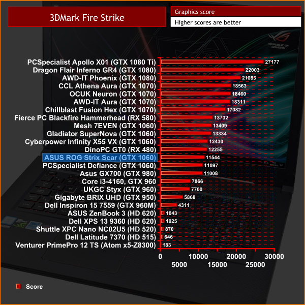 However, the Scar has definitely suffered from what is known as the ‘ROG tax' – £1599.99 for a GTX 1060/i7 does look a bit pricey. To put that into context, in September last year I reviewed the very similar PCSpecialist Defiance III which costs £1349, while a brief look on Overclockers UK tells us that GTX 1060/i7 laptops can be had for as little as £1199.